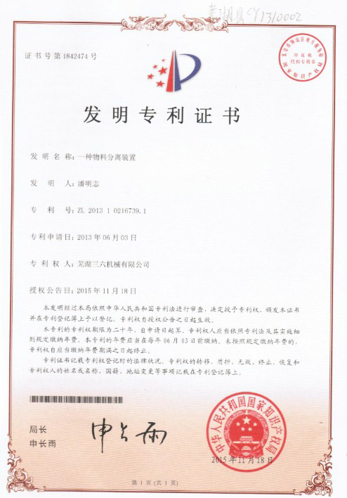 發(fā)明專(zhuān)利證書(shū)